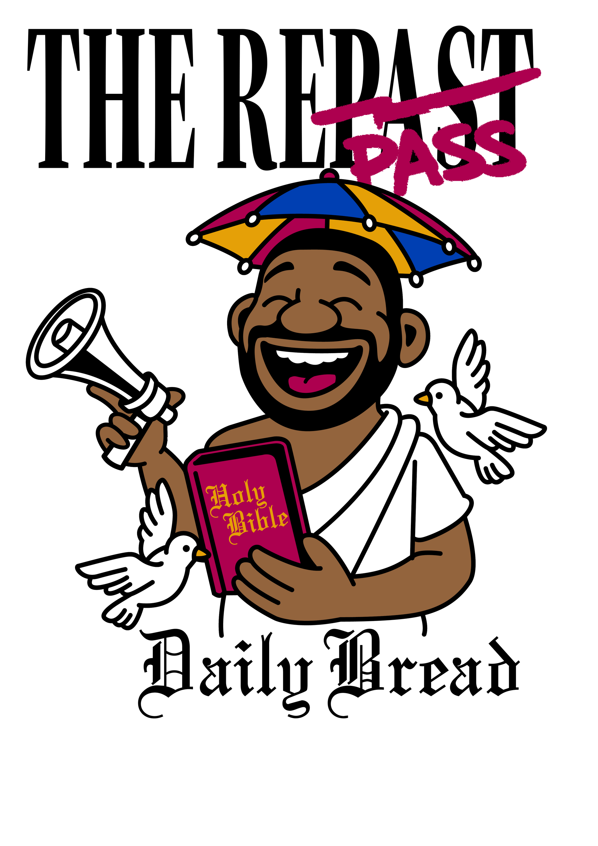 The Daily Bread Tee is a bold tribute to Keith Sam, the iconic street preacher known throughout the city as “Umbrella Man.” With his signature umbrella, amplified voice, and unwavering call to repentance, Umbrella Man became a fixture of the New Orleans spiritual landscape. This shirt captures his presence with a custom artistic depiction—part streetwear, part gospel.